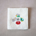 「四神」をマシュロバ風にゆるっとしたテイストで描いたイラストを立体感と光沢感のある刺繍で再現し、かわいくてかつ、ええ素材のタオルハンカチになりました。